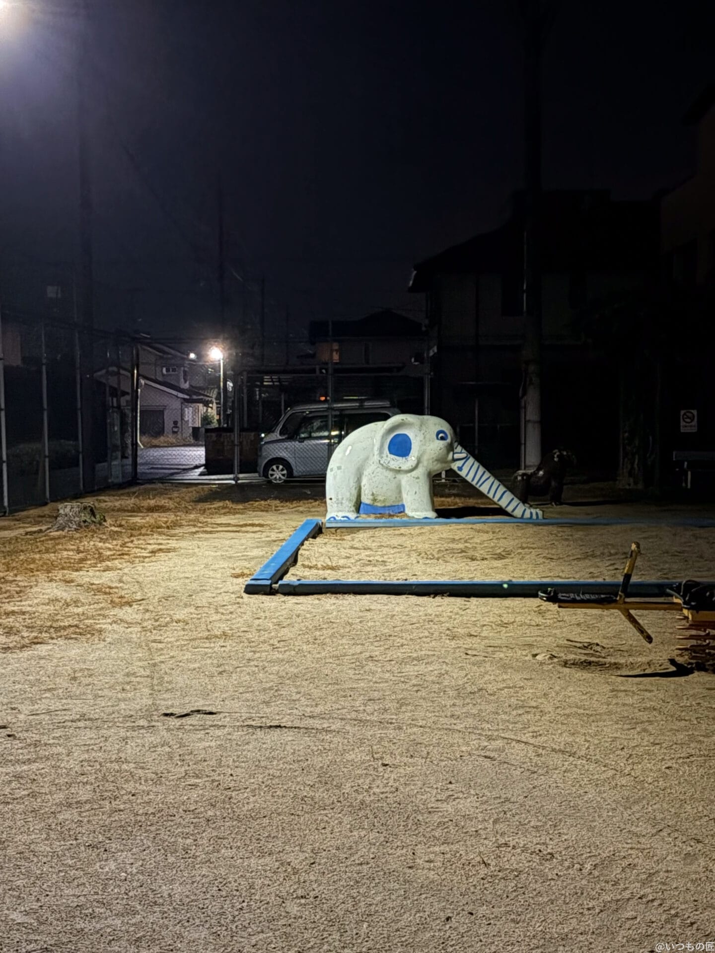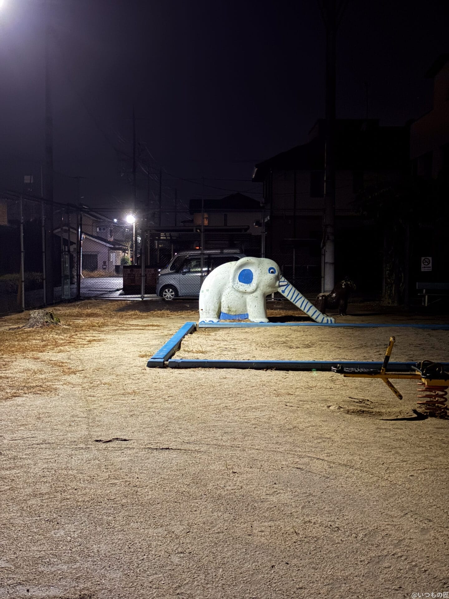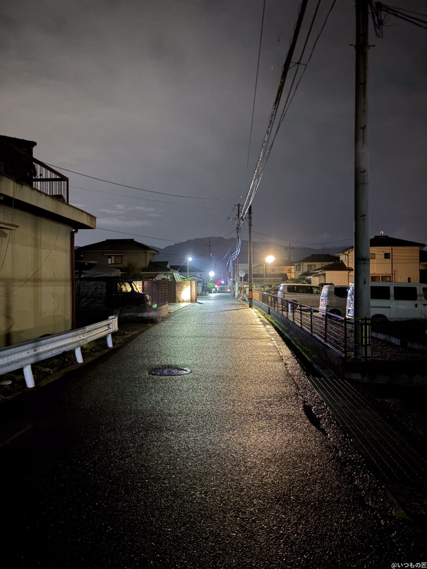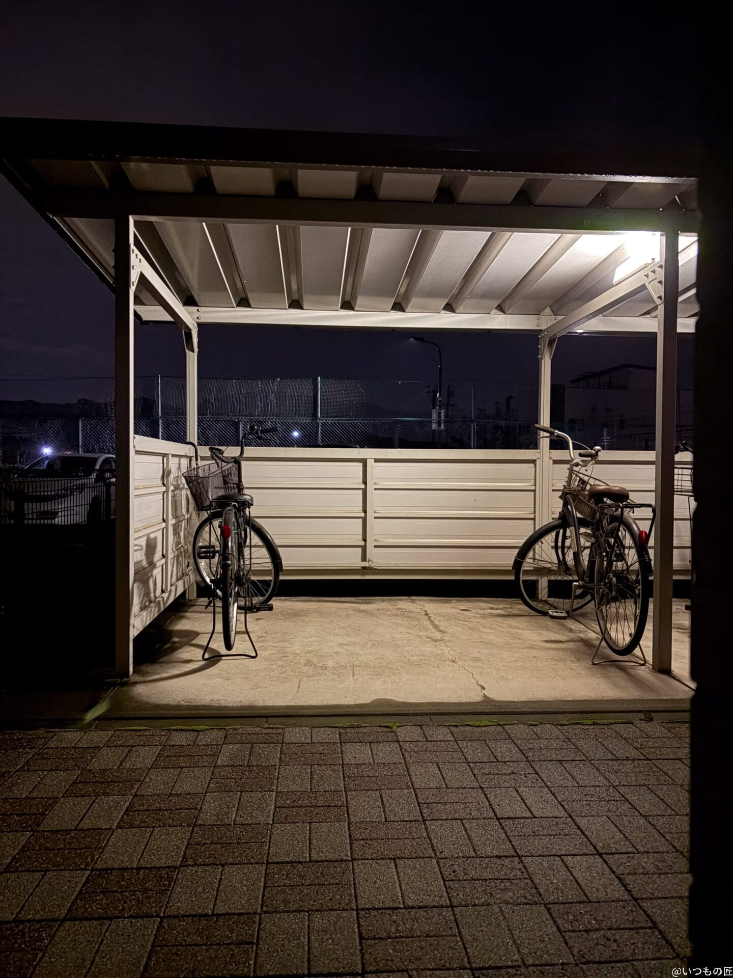 以下は、ナイトモードの比較写真です。通常モードでは解像感が低く、白とびや色滲みが目立ちます。しかし、ナイトモード撮影では明るさが増し、水飲み場や手すりの色味が復活しました。光の拡散やゴーストは見られるものの、写りは鮮明できれいです。