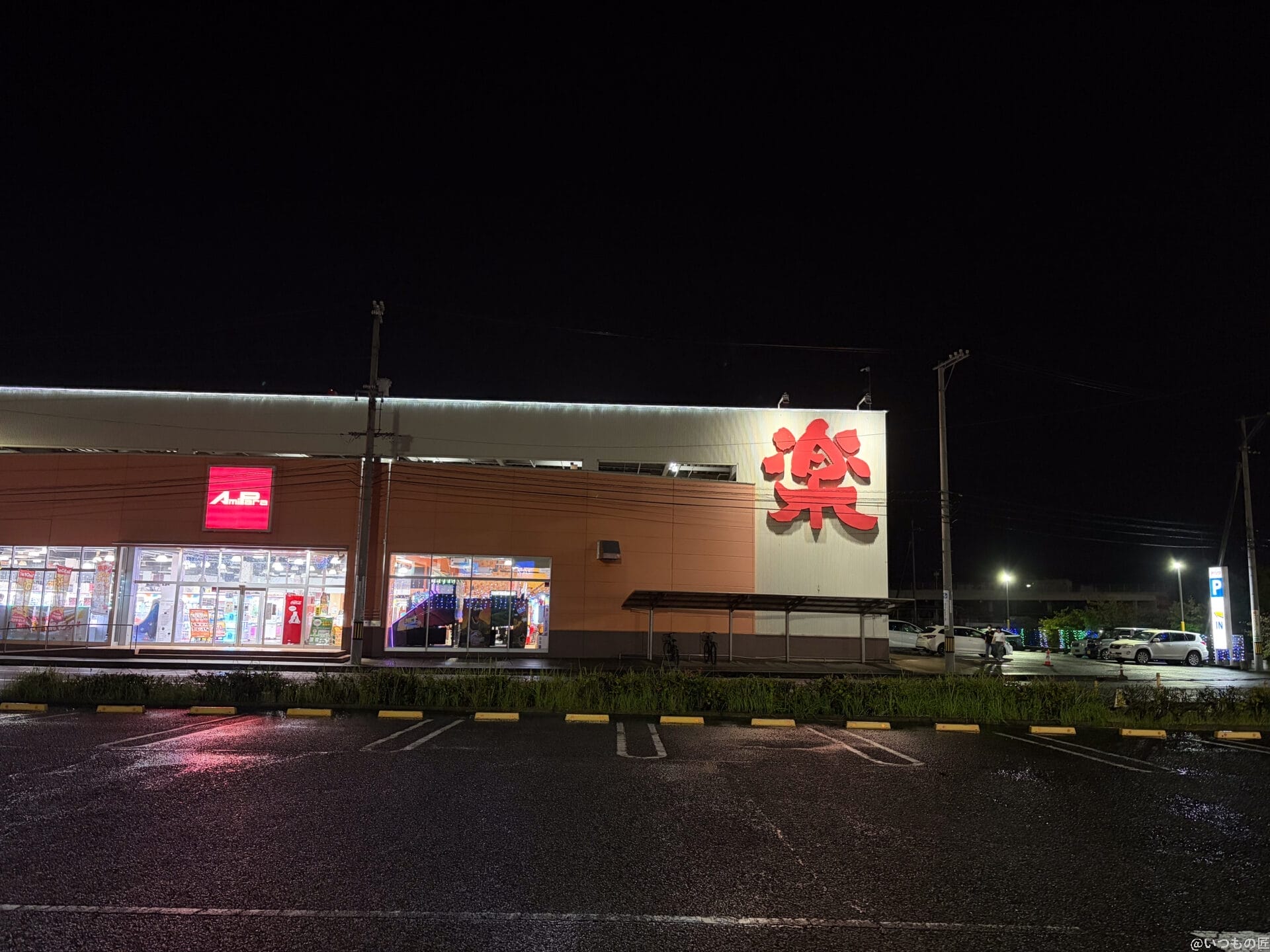ショッピングモールの駐車場を、ズーム撮影した作例です。右から2番目の白い看板に2倍ズームで寄ると、1倍では見えなかった文字までくっきり確認できました。暗所のズームにしては解像感が高く、細部までしっかり写っています。