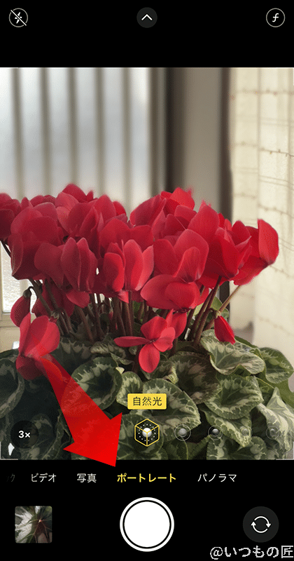 まずカメラアプリを起動した後、撮影モードのうち「ポートレート」を選択します。